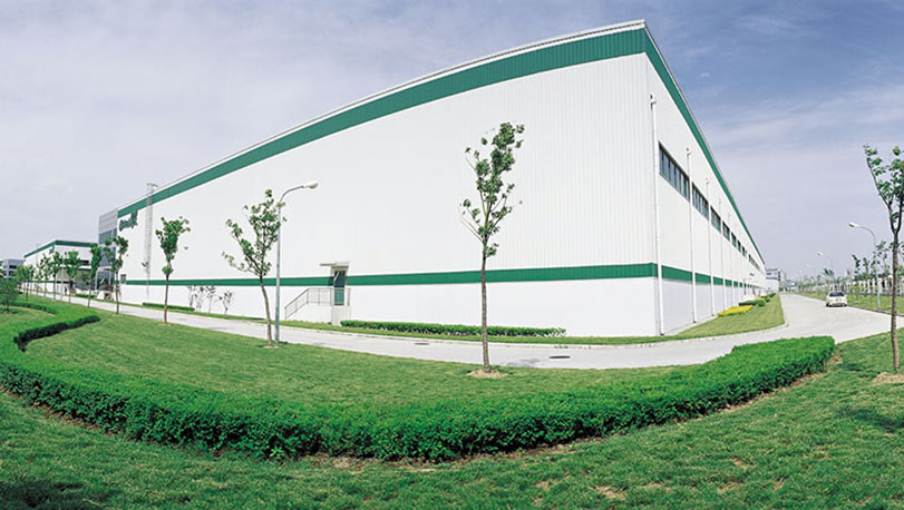 北京普洛斯位于北京市三大物流基地之一的通州物流基地,緊鄰亦莊經(jīng)濟(jì)技術(shù)開發(fā)區(qū)和京津塘高速,2010年建設(shè)。屋面為鍍鋁鋅光板,牌號(hào)為S350GD+AZ,鋁鋅重量為165克/平方米。墻面采用寶鋼高耐侯鍍鋁鋅彩涂鋼板,顏色主體為白灰,色帶為闊葉綠,鍍鋁鋅鍍層重量150克/平方米,牌號(hào)為TS300GD+AZ。