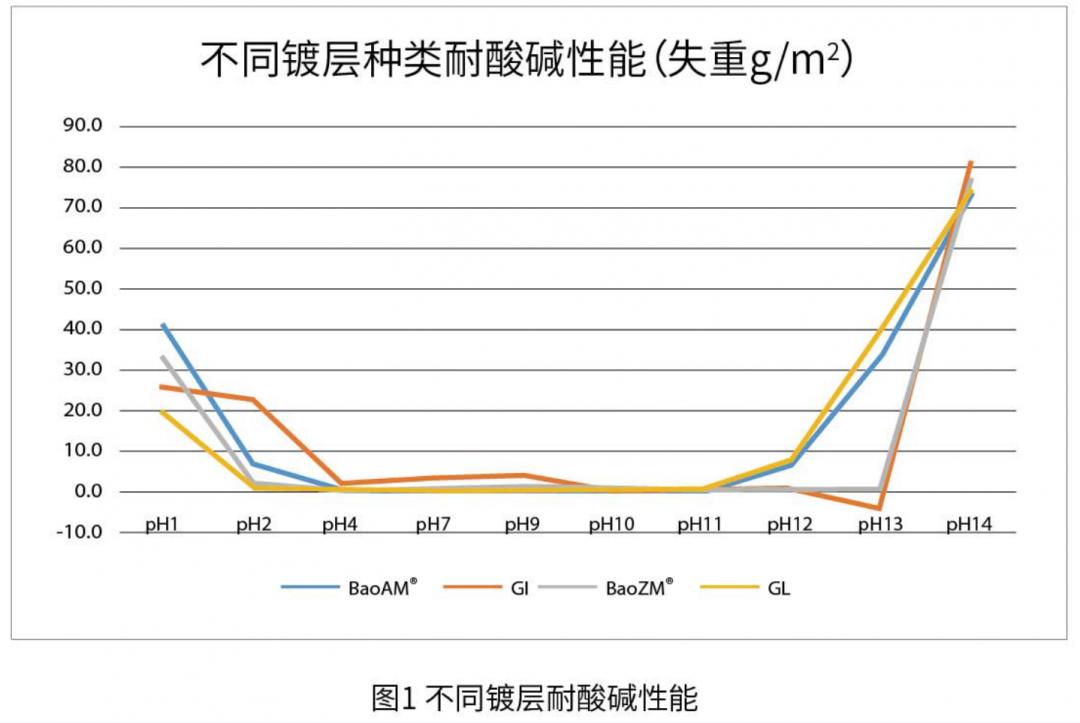在耐堿性方面,熱鍍鋅和BaoZM®表現優秀(圖1)。