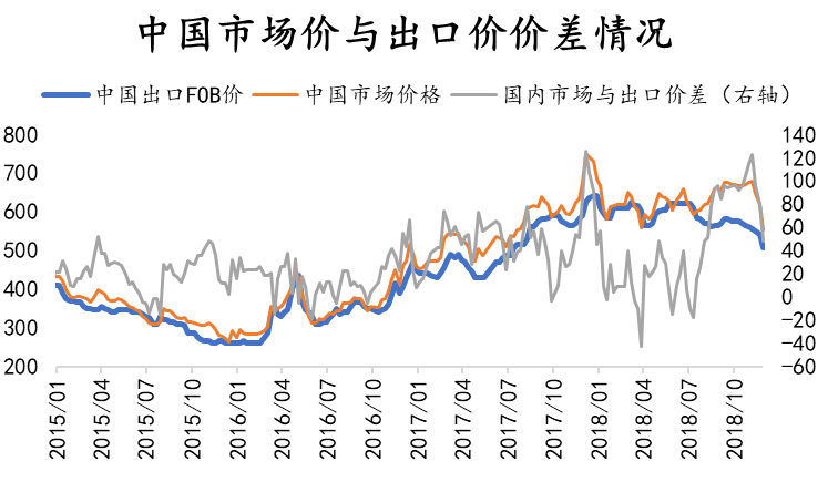 首先在11月下旬中國FOB價格出現(xiàn)大幅的下跌,鋼廠接受海外訂單量增加,并且11月中旬重點鋼企粗鋼日均產(chǎn)量195.15萬噸。11月中旬重點鋼企粗鋼日均產(chǎn)量195.15萬噸,旬環(huán)比增加3.51萬噸,增長1.83%。截至11月中旬末,重點鋼鐵企業(yè)鋼材庫存量為1327.11萬噸,旬環(huán)比增加104.23萬噸,上升8.52%。從鋼企日均產(chǎn)量可以看出,目前鋼材產(chǎn)量還是在不斷上升中,決定目前鋼市價格的還是下游的終端需求,但目前市場供大于求的狀況未有改變,并且國內(nèi)貿(mào)易商冬儲意向并不明顯,且部分地區(qū)出現(xiàn)停工現(xiàn)象,導(dǎo)致鋼廠出口意愿增加。另外中美貿(mào)易戰(zhàn)進(jìn)入90天“停火期”,這也利好鋼材的出口增加。綜合來看,12月份出口量或接近600萬噸,同環(huán)比均會有所上漲。