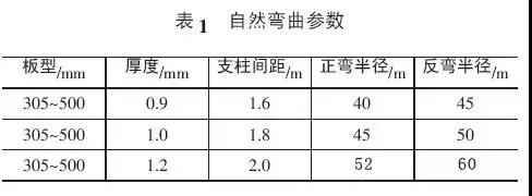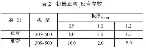 彎弧板機(jī)器正彎、反彎參數(shù),見(jiàn)表2。