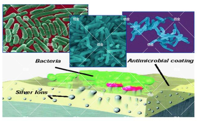 1. 干擾細(xì)胞壁的合成。銀離子抗菌劑對(duì)細(xì)胞壁的干擾作用,主要抑制多糖鏈與四肽交聯(lián)有連結(jié),從而使細(xì)胞壁失去完整性,失去了對(duì)滲透壓的保護(hù)作用,損害菌體而死亡。